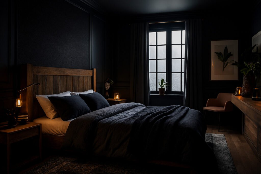 A moody retreat is all about embracing deep, rich colors to create a cozy atmosphere. This design approach focuses on crafting an intimate and enveloping space perfect for rest and relaxation.
